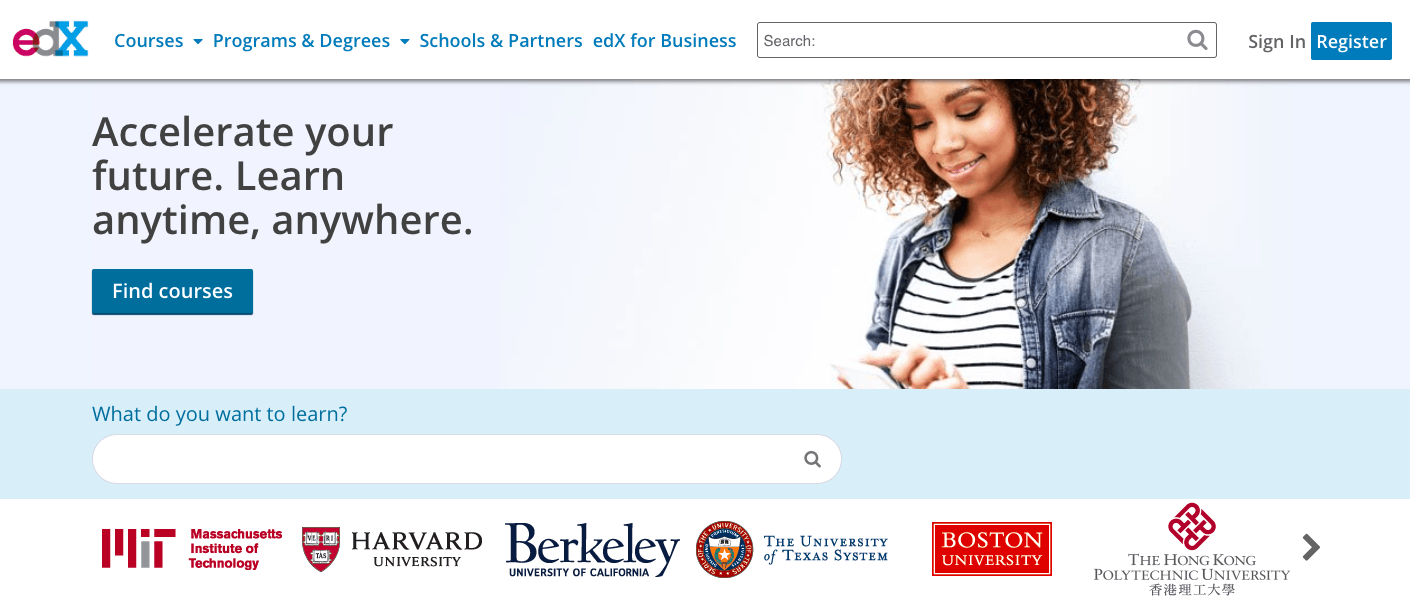「edX」では、無料で名門大学のオンラインコースを受講でき、それに合格すると修了証(有料)を発行することができます。修了したコースやLinkedinや履歴書にも載せることができ、学習だけでなくキャリア形成のためにも利用している人が増えています。
