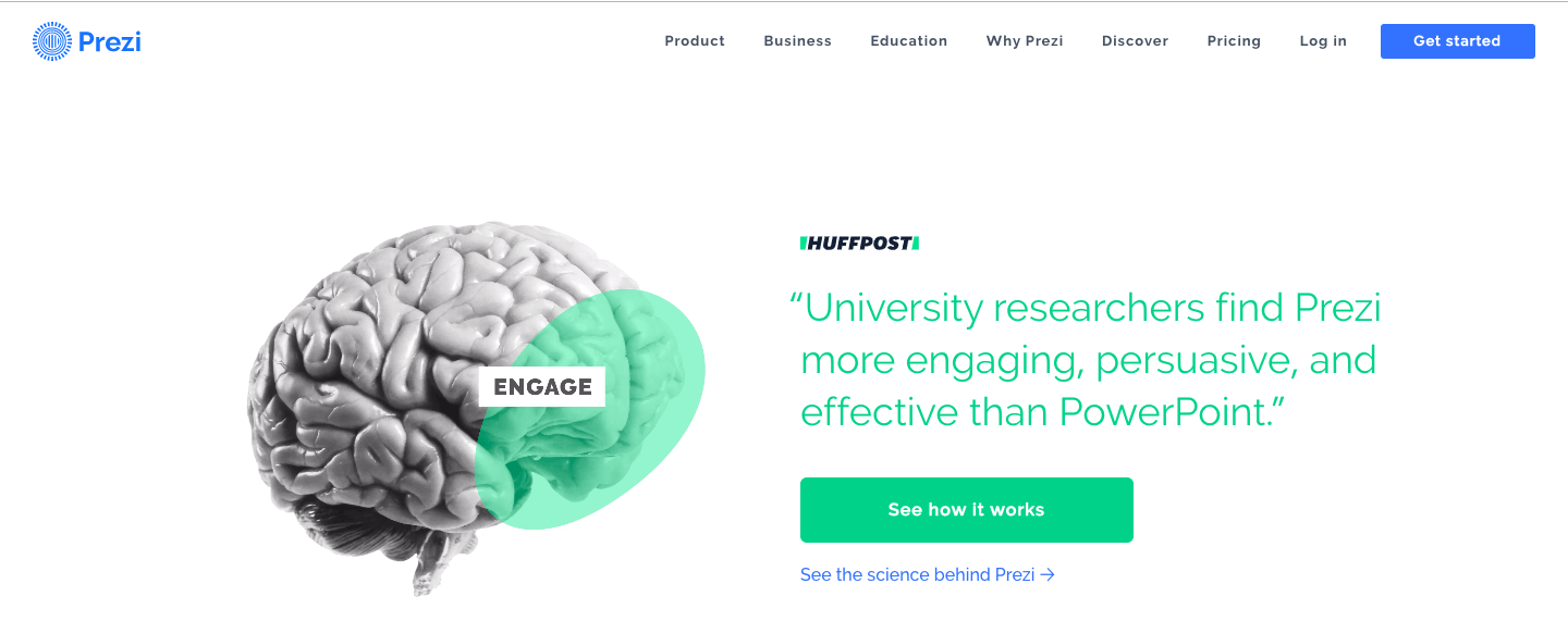 「Prezi」は誰でも動きのあるプレゼン資料を作成できるツールです。「Power」ポイントが紙芝居のように複数のスライドが次々に遷移するのに対し、「Prezi」は1枚の絵やスライドの中を移動するように、ズームや視点を変えたりと立体的に駆け回るのが特徴です。
