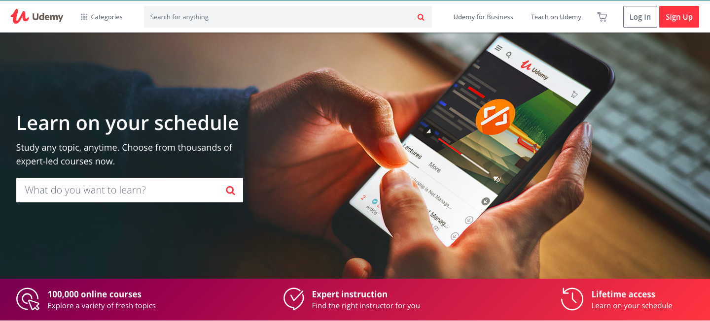 Udemy」は私がもっともお世話になっているサービスです。こちらは世界最大級のオンライン学習プラットフォームで、動画でさまざまな分野の講座を受けることができます。