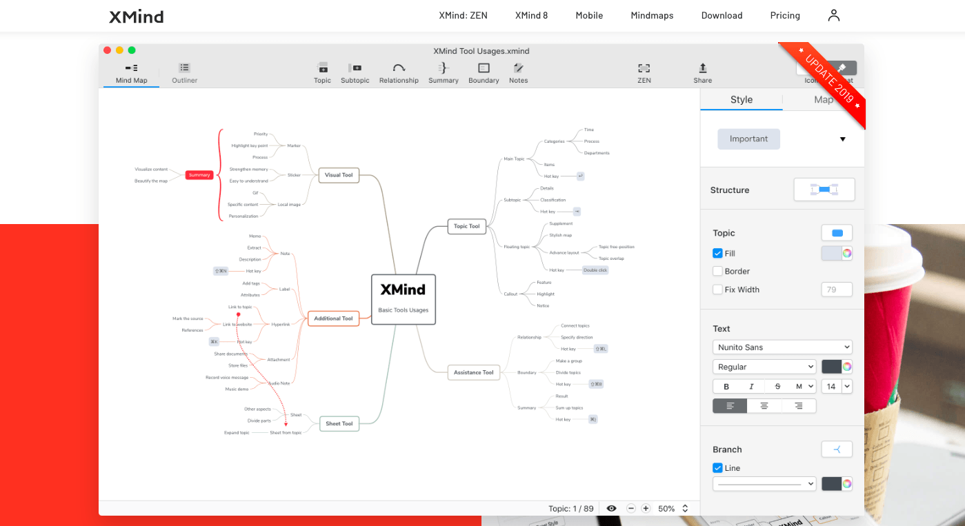 「Xmind」は自分の考えを絵のように表すための方法、マインドマップを綺麗に作ることができる無料ツールです。アメリカでは大量のエッセイやプレゼンをこなすことになるのですが、そのアイディアを固める手段として、ブレインストーミングがとても効果的です。